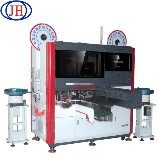 إن JH-09B عبارة عن ماكينة تجعيد ذات نهاية مزدوجة أوتوماتيكية بالكامل وإدخال ذات نهاية مزدوجة مع وظيفة وضع علامات متكاملة على الغلاف. إنها تقوم بتغذية الأسلاك، القطع، التجريد، تجعيد الأطراف على كلا الطرفين، إدخال المبيت على كلا الطرفين، وطباعة العلامات على المبيتات في دورة واحدة مستمرة.